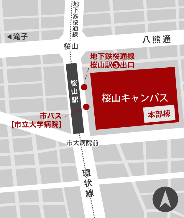 名古屋市立大学事務局総務課内(本部棟3F) - TEL