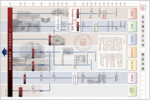 HOME ニュース&トピックス 名古屋市立大学「歴史年表パネル」を作成しました! 名古屋市立大学「歴史年表パネル」を作成しました! 本学の歴史が記された年表パネルを、川澄キャンパスさくら講堂(総合情報センター3階)のロビー及び、薬友会様のご協力により、田辺通キャンパス薬友会館に設置しました。 是非ご覧いただき、本学の歩みをお知りになっていただきたいと思います。 さくら講堂ロビー 田辺通キャンパス薬友会館 歴史年表(512KB)