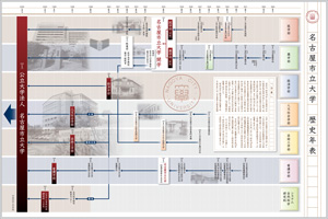 交流会について HOME 交流会について 名古屋市立大学歴史年表 名古屋市立大学歴史年表 本学の歴史が記された年表パネルを、川澄キャンパスさくら講堂(総合情報センター3階)のロビー及び、薬友会様のご協力により、田辺通キャンパス薬友会館に設置しました。 是非ご覧いただき、本学の歩みをお知りになっていただきたいと思います。 さくら講堂ロビー 田辺通キャンパス薬友会館 資料など 歴史年表(496KB)